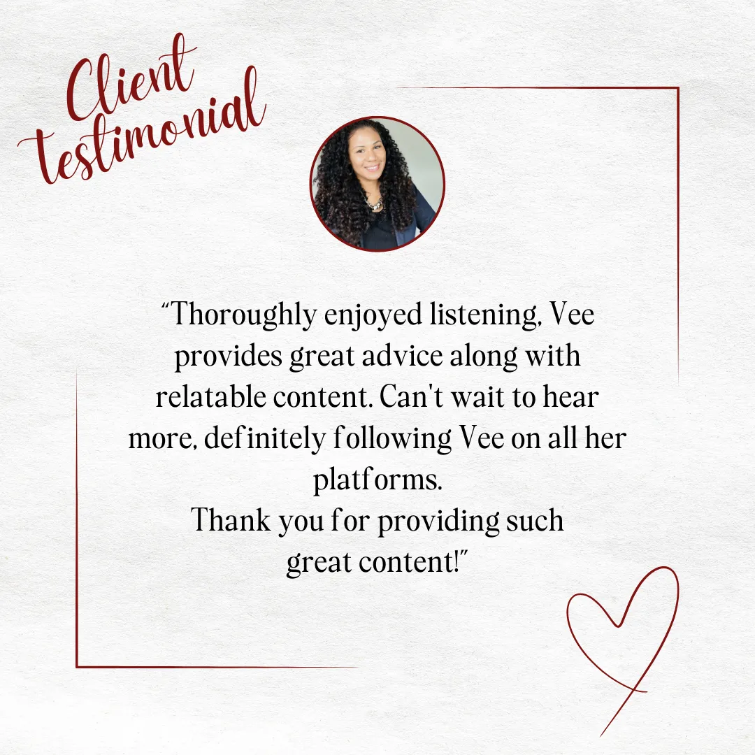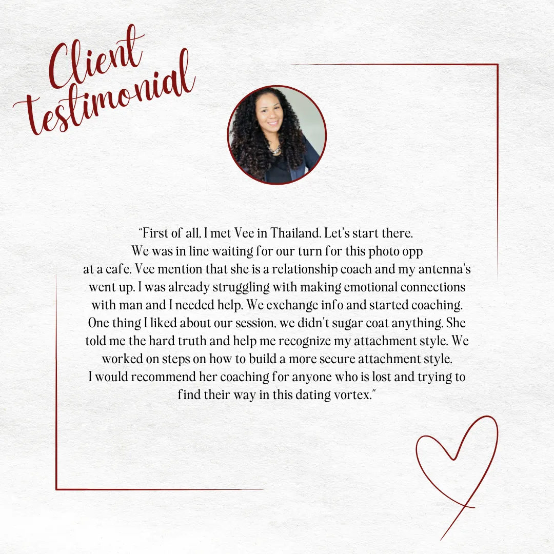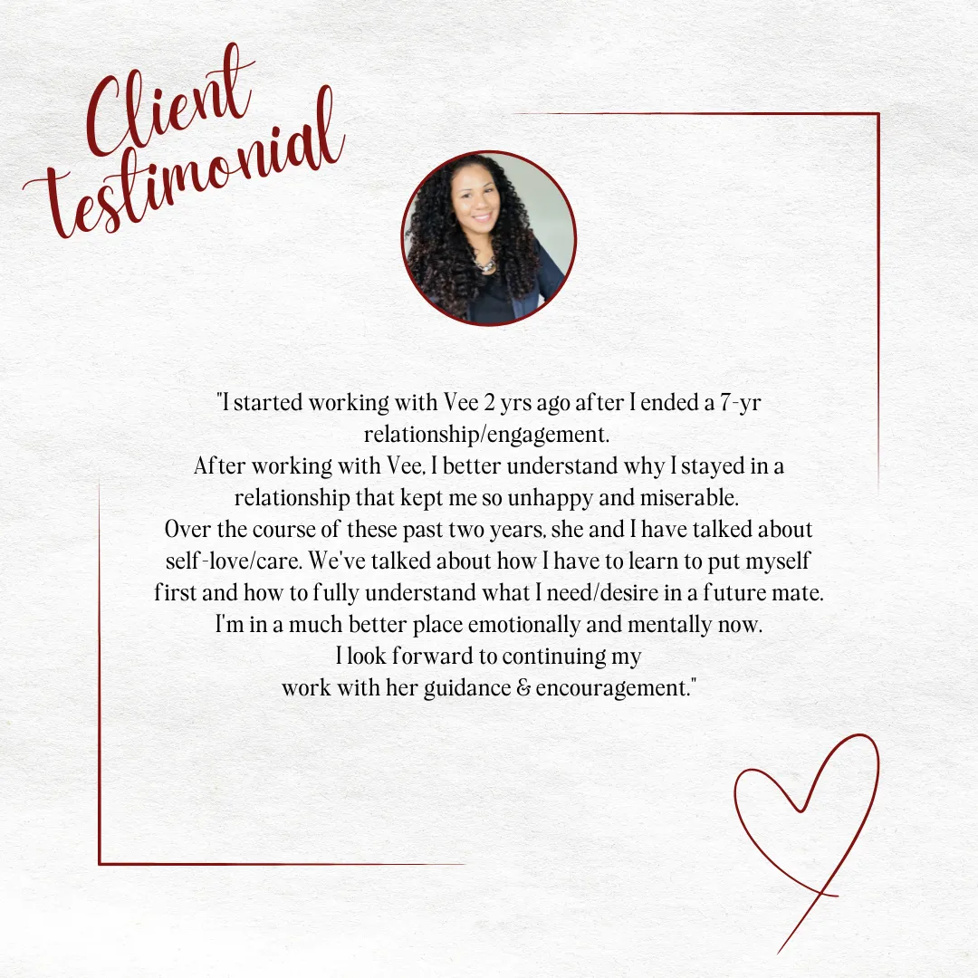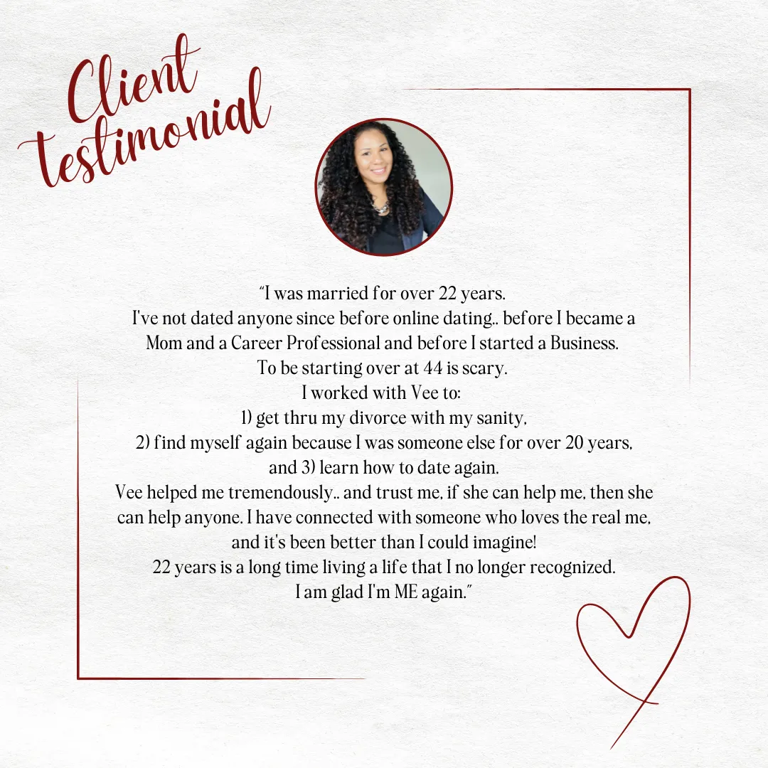 Vee coaches both Men and Women thru all phases of their Relationships - from healing, to dating, to attracting, and thru marital misalignment.